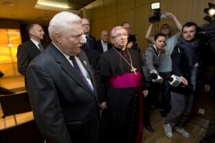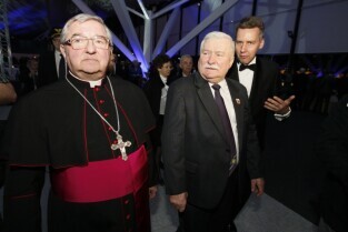 Port Lotniczy Gdańsk im. Lecha Wałęsy. Otwarcie T2 - nowego terminala pasażerskiego. Nz. były Prezydent RP Lech Wałęsa i Metropolita Gdański Abp Sławoj Leszek Głódź