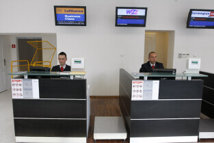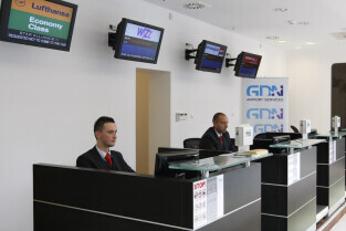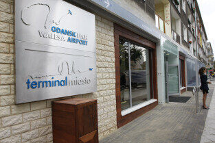 Nz. pierwsi klienci nowo powstałego Terminalu Miasto trójmiejskiego Portu Lotniczego im. Lecha Walesy.