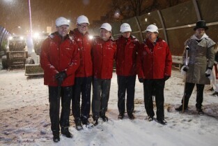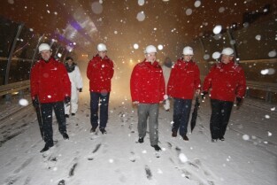 Gdańsk Wrzeszcz. Otwarcie estakady nad al. Grunwaldzką, będącą częścią środkowego (miejskiego) odcinka Trasy Słowackiego. Nz. od lewej: Marszałek Woj. Pomorskiego Mieczysław Struk, Prezydent Gdańska Paweł Adamowicz, Podsekretarz stanu w Ministerstwie Rozwoju Regionalnego Paweł Orłowski, po prawej Prezes spółki BIEG Ryszard Trykosko