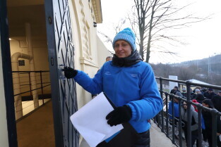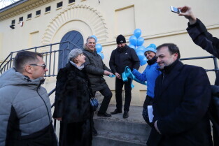 Gdańsk. Otwarcie Zbiornika Wody Sobieski dla zwiedzających. Nz. Jacek Skarbek, Prezes Zarządu GIWK i o. Tomasz Jank - Rektor kościoła Świętej Trójcy w Gdańsku.