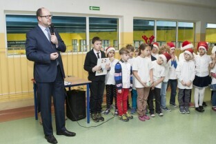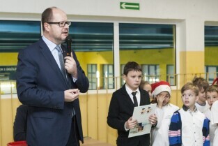Otwarcie zmodernizowanego basenu szkolnego. Gdańsk Żabianka, Zespół Szkół Sportowych i Ogólnokształcących przy ul. Subisława. Nz. Prezydent Gdańska Paweł Adamowicz