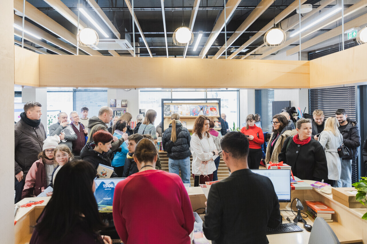 Gdańsk, ul. Łódzka Otwarcie biblioteki Dobry Moment. W wydarzeniu brali udział m.in. Mieczysław Struk, marszałek województwa pomorskiego, Aleksandra Dulkiewicz, prezydent Gdańska, Jarosław Zalesiński, dyrektor Wojewódzkiej i Miejskiej Biblioteki Publicznej w Gdańsku i Katarzyna Kowalewska, kierowniczka filii.
