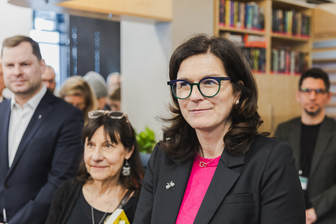 Gdańsk, ul. Łódzka Otwarcie biblioteki Dobry Moment. W wydarzeniu brali udział m.in. Mieczysław Struk, marszałek województwa pomorskiego, Aleksandra Dulkiewicz, prezydent Gdańska, Jarosław Zalesiński, dyrektor Wojewódzkiej i Miejskiej Biblioteki Publicznej w Gdańsku i Katarzyna Kowalewska, kierowniczka filii.