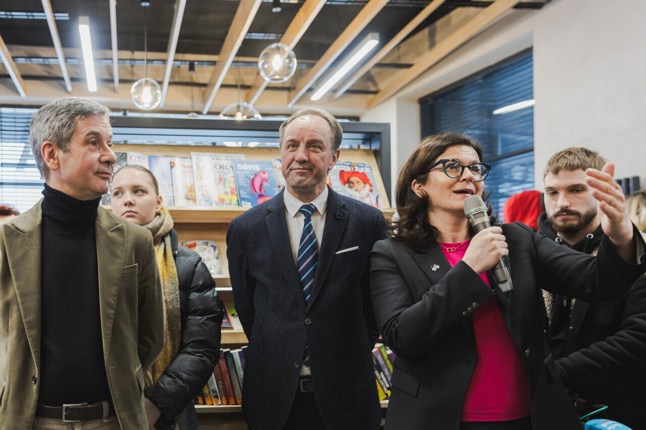 Gdańsk, ul. Łódzka Otwarcie biblioteki Dobry Moment. W wydarzeniu brali udział m.in. Mieczysław Struk, marszałek województwa pomorskiego, Aleksandra Dulkiewicz, prezydent Gdańska, Jarosław Zalesiński, dyrektor Wojewódzkiej i Miejskiej Biblioteki Publicznej w Gdańsku i Katarzyna Kowalewska, kierowniczka filii.