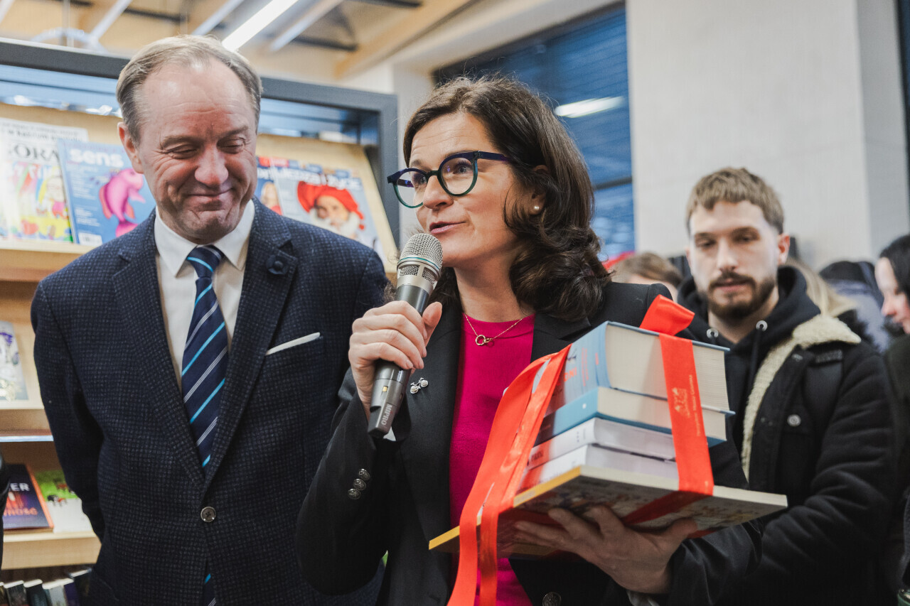 Gdańsk, ul. Łódzka Otwarcie biblioteki Dobry Moment. W wydarzeniu brali udział m.in. Mieczysław Struk, marszałek województwa pomorskiego, Aleksandra Dulkiewicz, prezydent Gdańska, Jarosław Zalesiński, dyrektor Wojewódzkiej i Miejskiej Biblioteki Publicznej w Gdańsku i Katarzyna Kowalewska, kierowniczka filii.