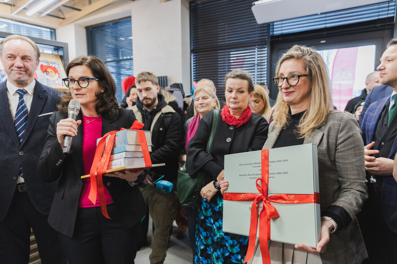 Gdańsk, ul. Łódzka Otwarcie biblioteki Dobry Moment. W wydarzeniu brali udział m.in. Mieczysław Struk, marszałek województwa pomorskiego, Aleksandra Dulkiewicz, prezydent Gdańska, Jarosław Zalesiński, dyrektor Wojewódzkiej i Miejskiej Biblioteki Publicznej w Gdańsku i Katarzyna Kowalewska, kierowniczka filii.