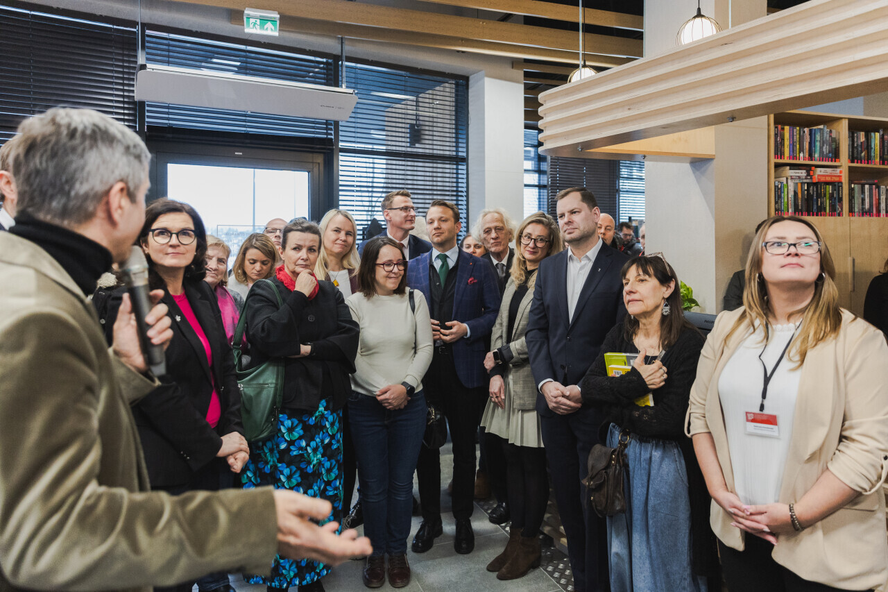 Gdańsk, ul. Łódzka Otwarcie biblioteki Dobry Moment. W wydarzeniu brali udział m.in. Mieczysław Struk, marszałek województwa pomorskiego, Aleksandra Dulkiewicz, prezydent Gdańska, Jarosław Zalesiński, dyrektor Wojewódzkiej i Miejskiej Biblioteki Publicznej w Gdańsku i Katarzyna Kowalewska, kierowniczka filii.