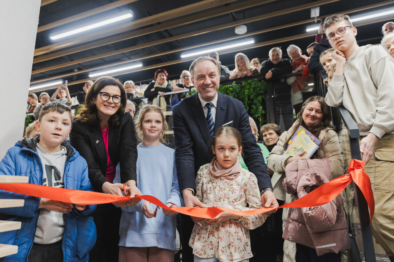 Gdańsk, ul. Łódzka Otwarcie biblioteki Dobry Moment. W wydarzeniu brali udział m.in. Mieczysław Struk, marszałek województwa pomorskiego, Aleksandra Dulkiewicz, prezydent Gdańska, Jarosław Zalesiński, dyrektor Wojewódzkiej i Miejskiej Biblioteki Publicznej w Gdańsku i Katarzyna Kowalewska, kierowniczka filii.
