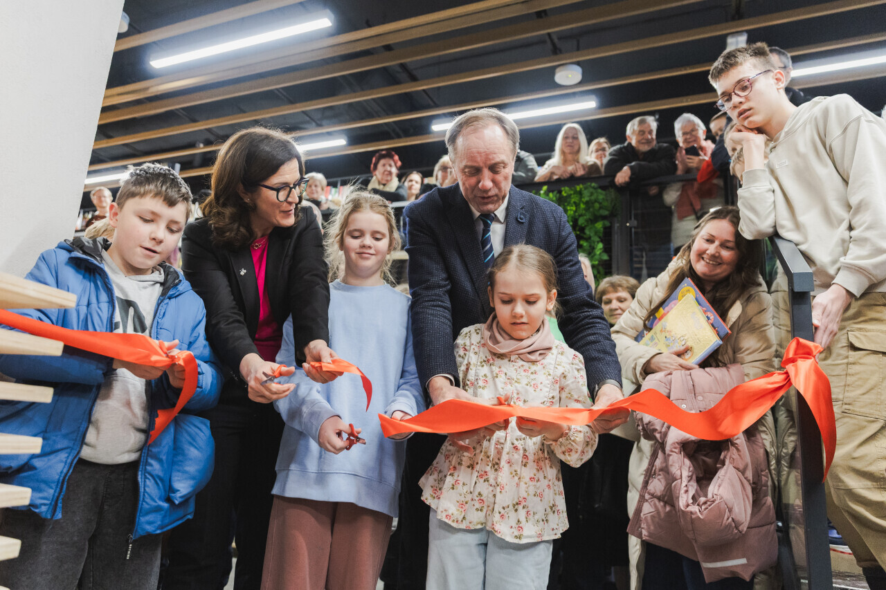 Gdańsk, ul. Łódzka Otwarcie biblioteki Dobry Moment. W wydarzeniu brali udział m.in. Mieczysław Struk, marszałek województwa pomorskiego, Aleksandra Dulkiewicz, prezydent Gdańska, Jarosław Zalesiński, dyrektor Wojewódzkiej i Miejskiej Biblioteki Publicznej w Gdańsku i Katarzyna Kowalewska, kierowniczka filii.