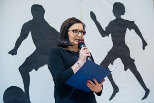 Otwarcie boiska w Szkole Podstawowej nr 40 w Gdańsku. Nz mgr Elżbieta Niewiadomska - Dyrektor Szkoły.