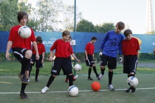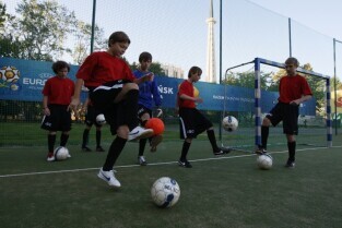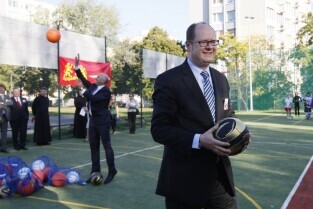 Gdańsk Przymorze, Gimnazjum nr 20. Otwarcie 13. boiska w ramach programu "Junior Gdańsk 2012". Sponsorem budowy obiektu jest Grupa LOTOS SA. Nz. Romuald Kinda - Społeczny Komitet Wsparcia Euro 2012