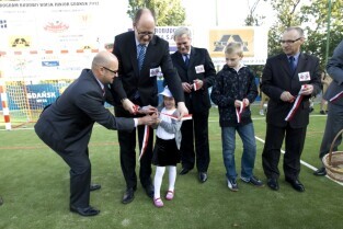 Gdańsk Brzeźno, Szkoła Podstawowa nr 20. Otwarcie kolejnego, czternastego, boiska wybudowanego w ramach programu "Junior Gdańsk 2012". Nz. gdański radny Krzysztof Wiecki