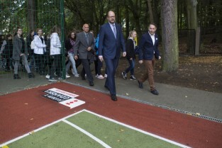 Gdańsk Wrzeszcz. Otwarcie boiska przyszkolnego przy III Liceum Ogólnokształcącym. Nz. po prawej Prezydent Gdańska Paweł Adamowicz