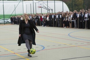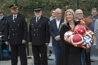 Otwarcie boiska przy Pomorskich Szkołach Rzemiosł w Gdańsku przy ul. Sobieskiego. Nz. Dyrektor Pomorskich Szkół Rzemiosł Beata Wierzba
