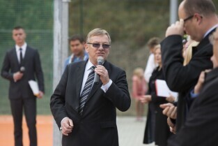 Otwarcie boiska przy Pomorskich Szkołach Rzemiosł w Gdańsku przy ul. Sobieskiego. Nz. Radny Miasta Gdańska Mirsoław Zdanowicz