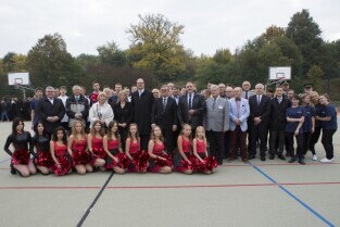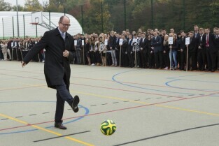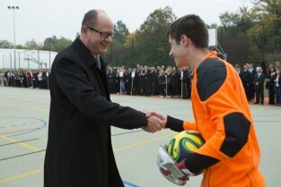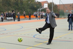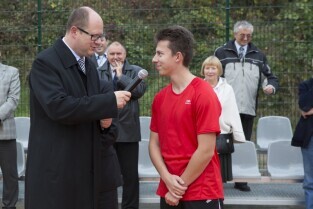 Otwarcie boiska przy Pomorskich Szkołach Rzemiosł w Gdańsku przy ul. Sobieskiego. Nz. Prezydent Gdańska Paweł Adamowicz
