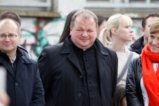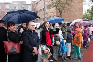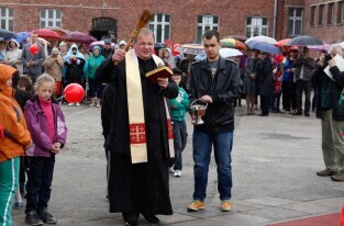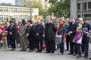 W setną rocznicę przyłączenia Stogów do Gdańska uroczyście otworzono nowe przyszkolene boisko. Szkoła Podstawowa nr 11 przy ul. Stryjewskiego 28. Nz. ks. Proboszcz Tadeusz Ławicki.