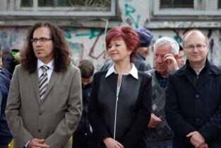 W setną rocznicę przyłączenia Stogów do Gdańska uroczyście otworzono nowe przyszkolene boisko. Szkoła Podstawowa nr 11 przy ul. Stryjewskiego 28. Nz. od lewej Piotr Janusz Pardo Dyrektor SP 11, Teresa Pańka Zastępca Dyrektora SP 11, Maciej Lisicki Zastępca Prezydenta Gdańska.