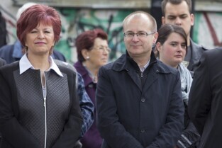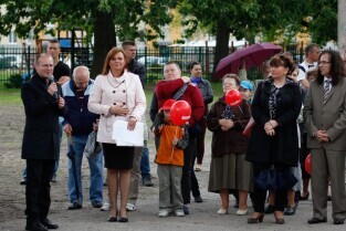 W setną rocznicę przyłączenia Stogów do Gdańska uroczyście otworzono nowe przyszkolene boisko. Szkoła Podstawowa nr 11 przy ul. Stryjewskiego 28. Nz. od lewej Teresa Pańka Zastępca Dyrektora SP 11, Maciej Lisicki Zastępca Prezydenta Gdańska.