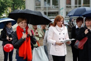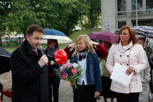 W setną rocznicę przyłączenia Stogów do Gdańska uroczyście otworzono nowe przyszkolene boisko. Szkoła Podstawowa nr 11 przy ul. Stryjewskiego 28. Nz. przemawia Katarzyna Dudzin Grupa EDF.
