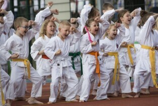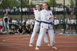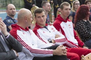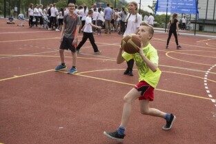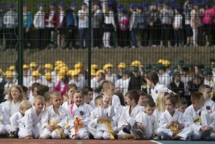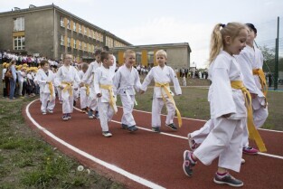 Gdańsk Chełm, ul. Reformacka. Otwarcie boiska wielofunkcyjnego przy Szkole Podstawowej nr 47. Nz. sportowiec Leszek Blanik