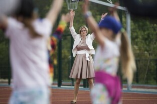 Gdańsk Chełm, ul. Reformacka. Otwarcie boiska wielofunkcyjnego przy Szkole Podstawowej nr 47. Nz. od lewej: Dyrektor SP 47 Barbara Deptała, Dyrektor Wydział Rozwoju Społecznego UMG Grzegorz Szczuka, Przewodnicząca Rady Rodziców SP 47 Anna Rożek, Prezydent Gdańska Paweł Adamowicz z córką Teresa, Dyrektor Naczelny Dyrekcji Rozbudowy Gdańska Włodzimierz Bartosiewicz