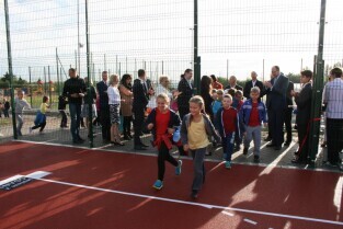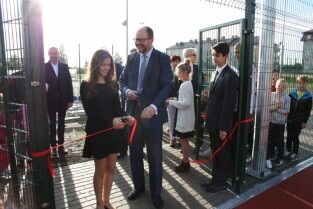 Gdańsk, Orunia Górna. Otwarcie nowego boiska do piłki ręcznej i koszykówki przy Zespole Kształcenia Podstawowego i Gimnazjalnego nr 6 przy ul. Hoena