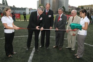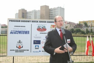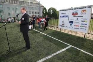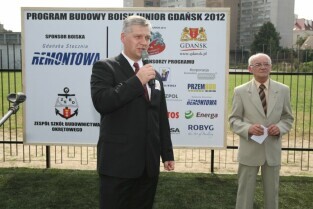 Gdańsk, otwarcie boiska Zespole Szkół Budownictwa Okrętowego. Obiekt został zbudowany w ramach Programu Budowy Boisk Junior Gdańsk 2012.