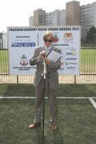 Gdańsk, otwarcie boiska Zespole Szkół Budownictwa Okrętowego. Obiekt został zbudowany w ramach Programu Budowy Boisk Junior Gdańsk 2012. Nz. Romuald Kinda - Społeczny Komitet Wsparcia Euro 2012