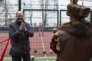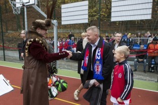 Gdańsk Wrzeszcz, Zespół Szkół Specjalnych przy ul. Batorego. Otwarcie nowego obiektu sportowego: boiska sportowego i bieżni lekkoatletycznej. Nz. Prezydent Gdańska Paweł Adamowicz