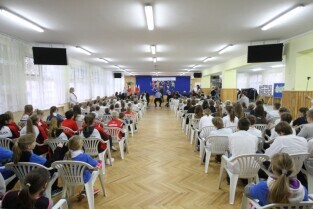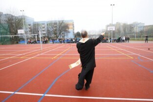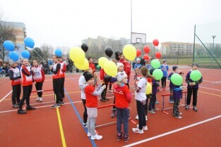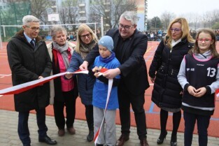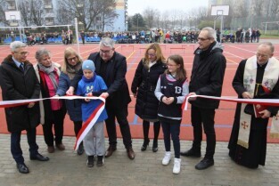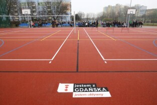 Gdańsk, Zespół Kształcenia Podstawowego i Gimnazjalnego nr 12. Uroczyste otwarcie boiska wielofunkcyjnego wybudowanego w ramach Budżetu Obywatelskiego.