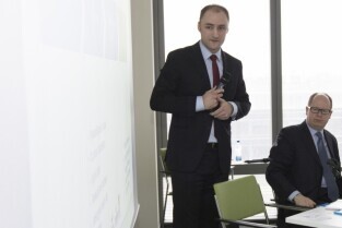 Otwarcie centrum finansowo - księgowego Bayera. Gdańsk, Olivia Tower przy al. Grunwaldzkiej. Nz. Prezes Bayer Sp. z o.o. Christophe Domont