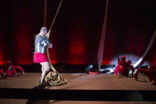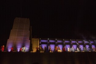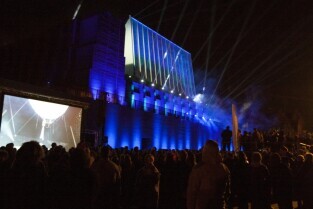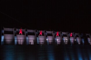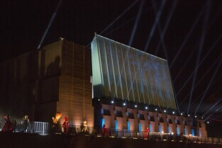 Gdańsk, Główne Miasto. Happening "Pierwsze Publiczne Otwarcie Dachu Gdańskiego Teatru Szekspirowskiego"
