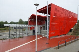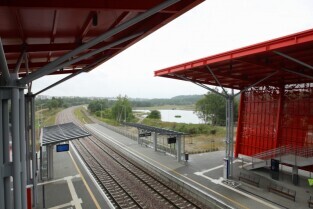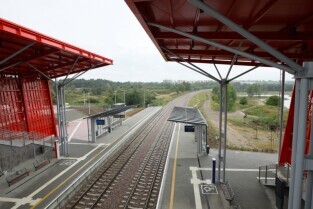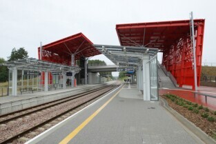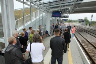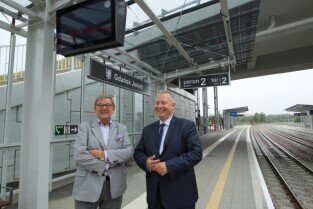 Otwarcie prawie 1,5 km odcinka dojazdowego do przystanku PKM Jasień – Nowa Myśliwska i Nowa Gronostajowa, łączący rondo na końcu ul. Myśliwskiej z rondem Gronostajowa. Konferencja prasowa na przystanku PKM Jasień. Nz (L) Ryszard Trykosko-GIK i (P) Wiceprezydent Gdańska Andrzej Bojanowski.
