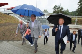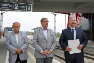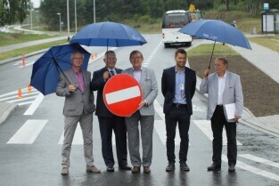 Otwarcie prawie 1,5 km odcinka dojazdowego do przystanku PKM Jasień – Nowa Myśliwska i Nowa Gronostajowa, łączący rondo na końcu ul. Myśliwskiej z rondem Gronostajowa. Konferencja prasowa na przystanku PKM Jasień. Nz Romuald Nietupski-GIK, Ryszard Trykosko- GIK i Wiceprezydent Gdańska Andrzej Bojanowski.