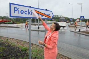 Otwarcie prawie 1,5 km odcinka dojazdowego do przystanku PKM Jasień – Nowa Myśliwska i Nowa Gronostajowa, łączący rondo na końcu ul. Myśliwskiej z rondem Gronostajowa. Nz Rzecznik GIK Magdalena Skorupka-Kaczmarek