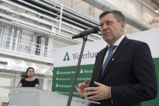 Gdańsk Kokoszki. Otwarcie fabryki przetwórstwa włókien sieciowanych Weyerhaeuser Poland. Nz. Wicepremier RP Janusz Piechociński