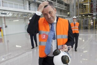 Gdańsk Kokoszki. Otwarcie fabryki przetwórstwa włókien sieciowanych Weyerhaeuser Poland. Nz. Prezydent Gdańska Paweł Adamowicz