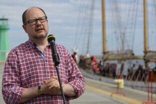 Gdansk Nowy Port. Otwarcie Falochronu dla Spacerowiczów. Nz Prezydent Gdańska Paweł Adamowicz