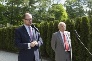 Gdańsk Oliwa. Otwarcie zrekonstruowanych przez Korporację Budowlaną DORACO dworku i folwarku Saltzmanna, znajdujących się w północnej części Parku Oliwskiego przy ul. Opackiej. Nz. Prezydent Gdańska Paweł Adamowicz