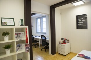 Gdańsk, Dolne Miasto, Reduta Wyskok. Otwarcie wyremontowanego zabytkowego budynku z nowymi przestrzeniami biurowymi, administrowanego przez Gdański Inkubator Przedsiębiorczości STARTER. Nz. Właściciel firmy 360 Brandish (pierwszego najemcy budynku) Marcin Potkański i Prezydent Gdańska Paweł Adamowicz