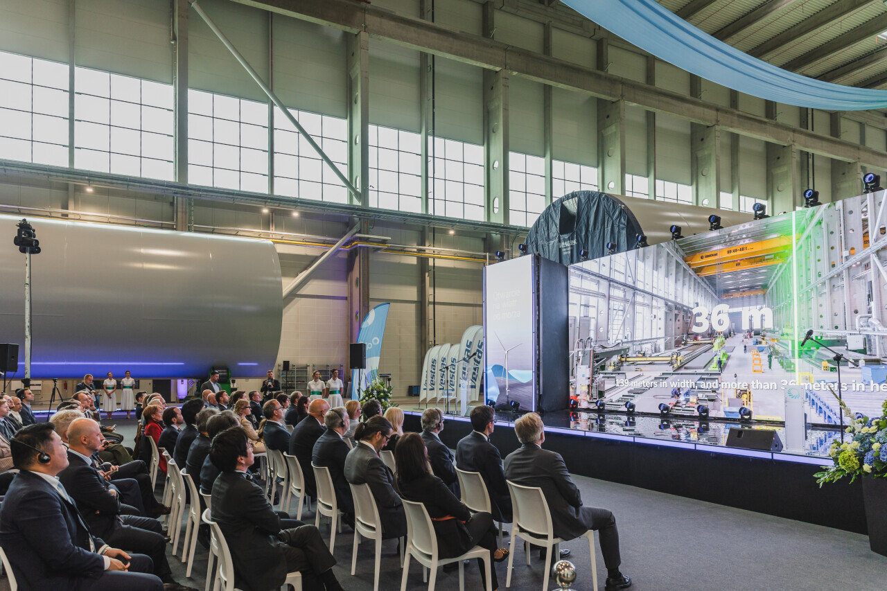 Gdańsk. Otwarcie na wiatr od morza. Celebracja wyprodukowania pierwszej sekcji wieży offshore w Polsce