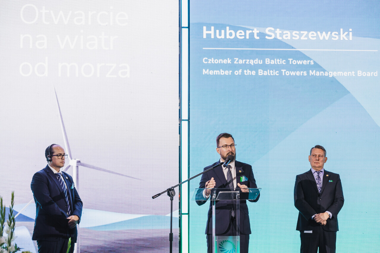 Gdańsk. Otwarcie na wiatr od morza. Celebracja wyprodukowania pierwszej sekcji wieży offshore w Polsce