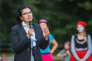 Gdańsk. Przymorze Małe. Park nad Potokiem. Otwarcie parku realizowanego w ramach BO 2017. Nz. Posłanka Małgorzata Chmiel