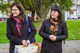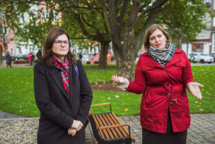 Gdańsk, ul. Świętojańska. Otwarcie placu zabaw w Parku Świętopełka. Nz. zastępca prezydenta Gdańska Aleksandra Dulkiewicz i Ewelina Latoszewska-GZDiZ