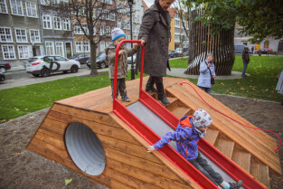 Gdańsk, ul. Świętojańska. Otwarcie placu zabaw w Parku Świętopełka