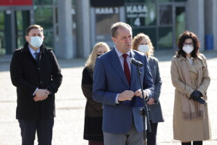 Gdańsk.Otwarcie punktu szczepień w ERGO ARENIE. Nz. Mieczysław Struk, marszałek województw pomorskieg.
