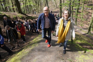 Gdańsk. Otwarcie punktu widokowego w lesie nieopodal ul. Jaśkowa Dolina połączone z festynem dla mieszkańców i miłośników turystyki miejskiej. Nz. Grażyna Kilarska i Organizator Paweł Burkiewicz-GZDiZ.