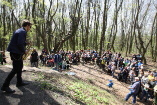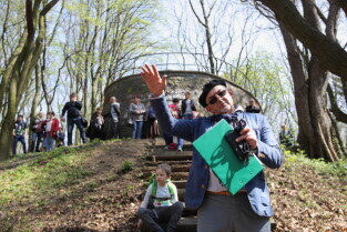 Gdańsk. Otwarcie punktu widokowego w lesie nieopodal ul. Jaśkowa Dolina połączone z festynem dla mieszkańców i miłośników turystyki miejskiej. Nz. Jakub Klemensiewicz.