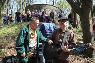 Gdańsk. Otwarcie punktu widokowego w lesie nieopodal ul. Jaśkowa Dolina połączone z festynem dla mieszkańców i miłośników turystyki miejskiej. Nz. Jarek Janiszewski i Jarek Ziętek-Zespół Bielizna.
